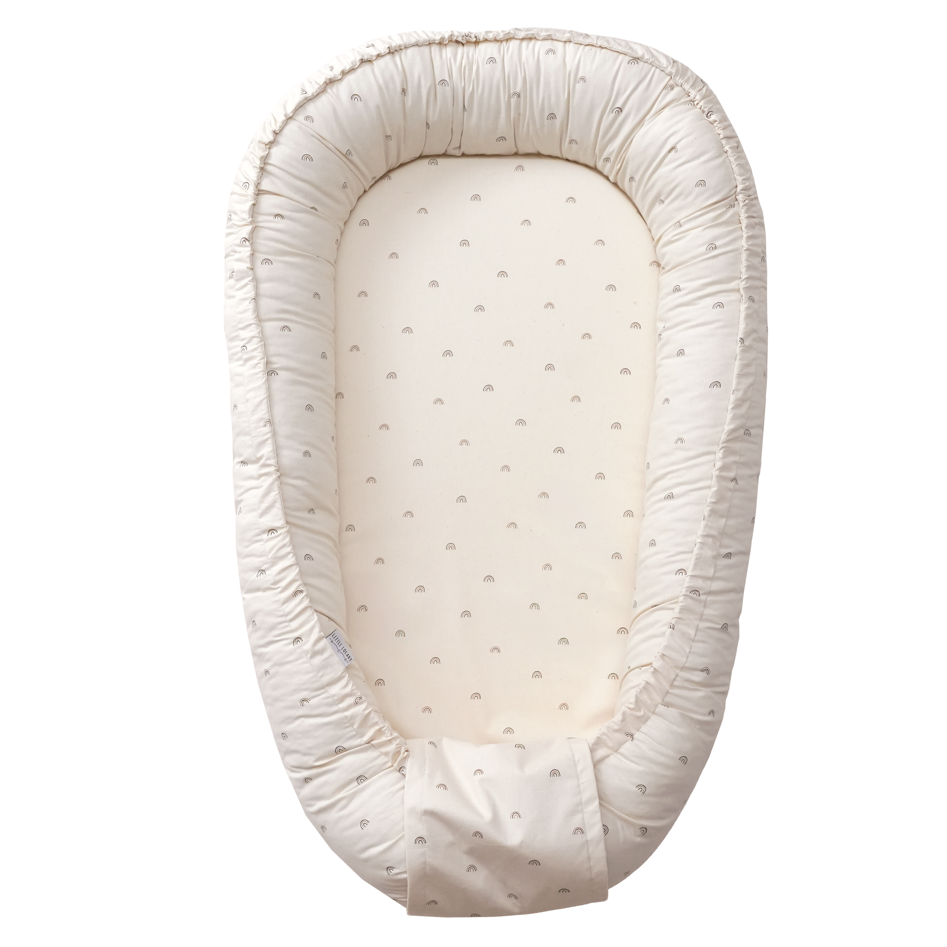 This baby nest is made from an ultra-soft cotton fabric and carefully handcrafted just for you. It’s a super practical essential — the padded edges keep your little one safe and cosy, providing a warm and secure feeling.
