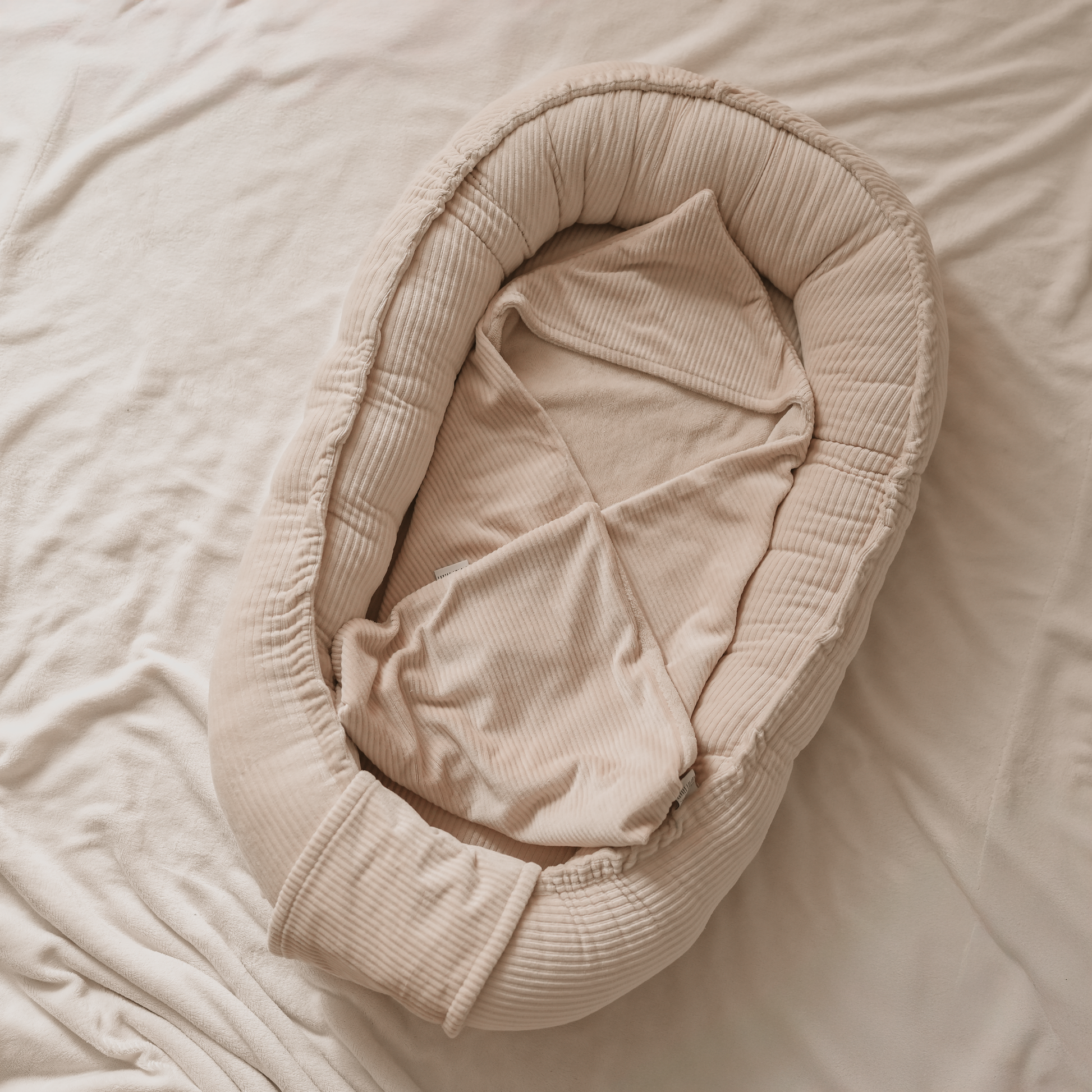 A swaddle blanket is an absolute essential for keeping your newborn warm and cosy — especially after a bath or during those cooler days. This double-sided swaddle, made from soft ribbed fabric and bamboo cotton, offers the perfect mix of warmth, comfort, and breathability.